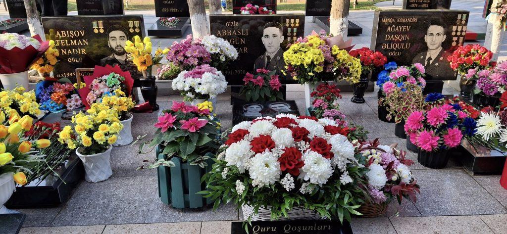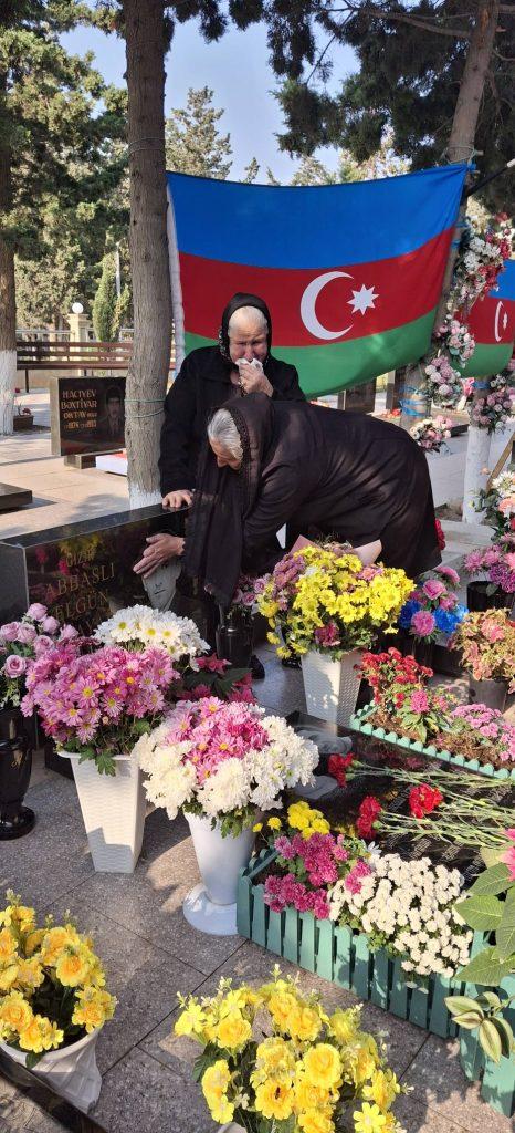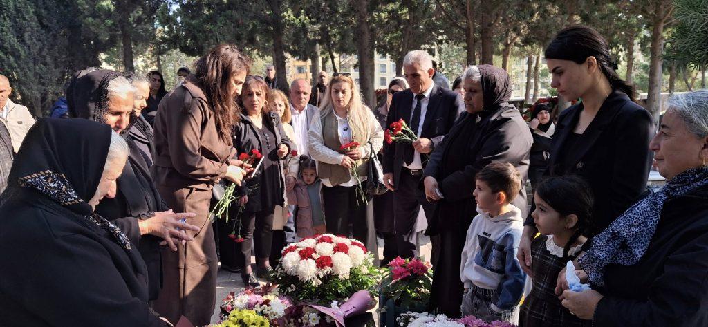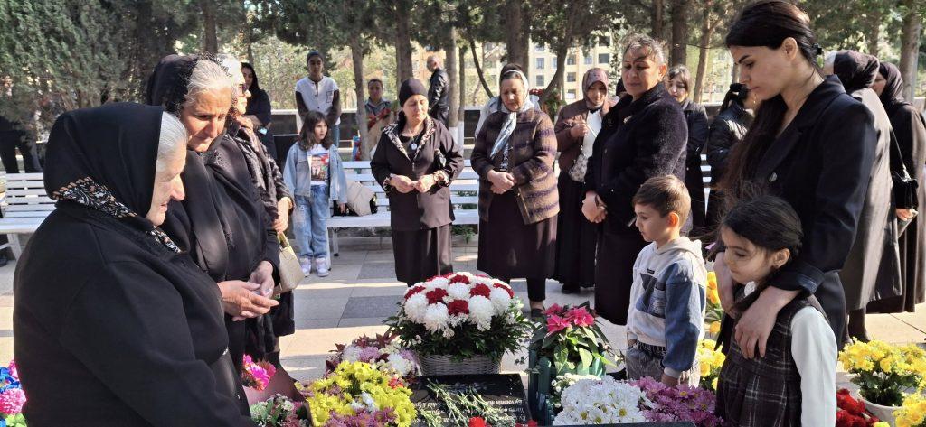 Məzarı üzərinə gül dəstələri düzülüb, əklil qoyulub, ruhuna dualar olunub, “Quran” oxunub, ailəsinə, doğmalarına Allahdan səbr dilənib.