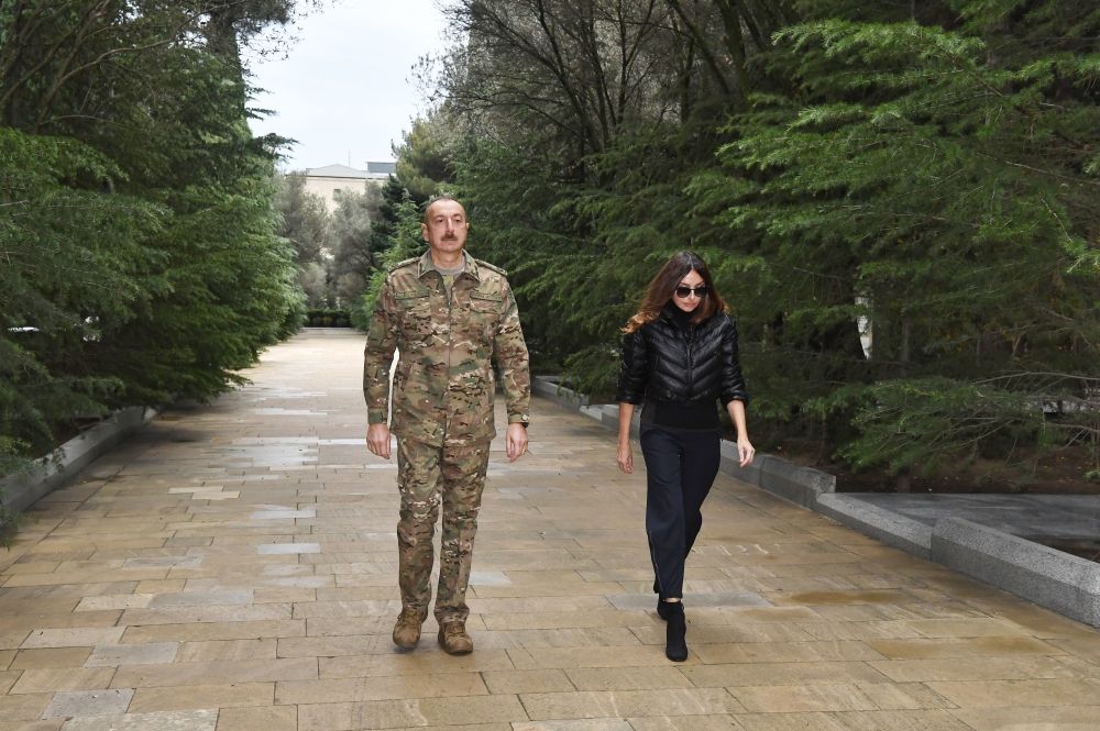 Əziz bacılar və qardaşlar, bu gün bu müjdəni mən burada – Şəhidlər xiyabanında doğma xalqıma verirəm. Bu, təsadüfi deyil. Bu, təbiidir. Bu gün şəhidlərimizin ruhu qarşısında bir daha baş əyirəm. Bu gün bəyan edirəm ki, şəhidlərimizin qanı yerdə qalmır. Erməni vəhşiliyinin qurbanlarının, Xocalı qurbanlarının qanı yerdə qalmır. İntiqamımızı döyüş meydanında aldıq. Biz mülki vətəndaşlara qarşı heç vaxt müharibə aparmamışıq, bu dəfə də aparmamışıq. Baxmayaraq ki, mənfur düşmən 93 mülki şəxsi namərd atəşlə öldürüb, 400-dən çox mülki şəxs yaralanıb. Amma mən dedim yox, biz azərbaycanlıyıq! Biz intiqamımızı döyüş meydanında alacağıq və alırıq! Onların ordusunu məhv etmişik, texnikasını məhv etmişik, məhv edirik və edəcəyik. Düşməni qovuruq və qovacağıq!