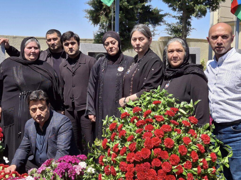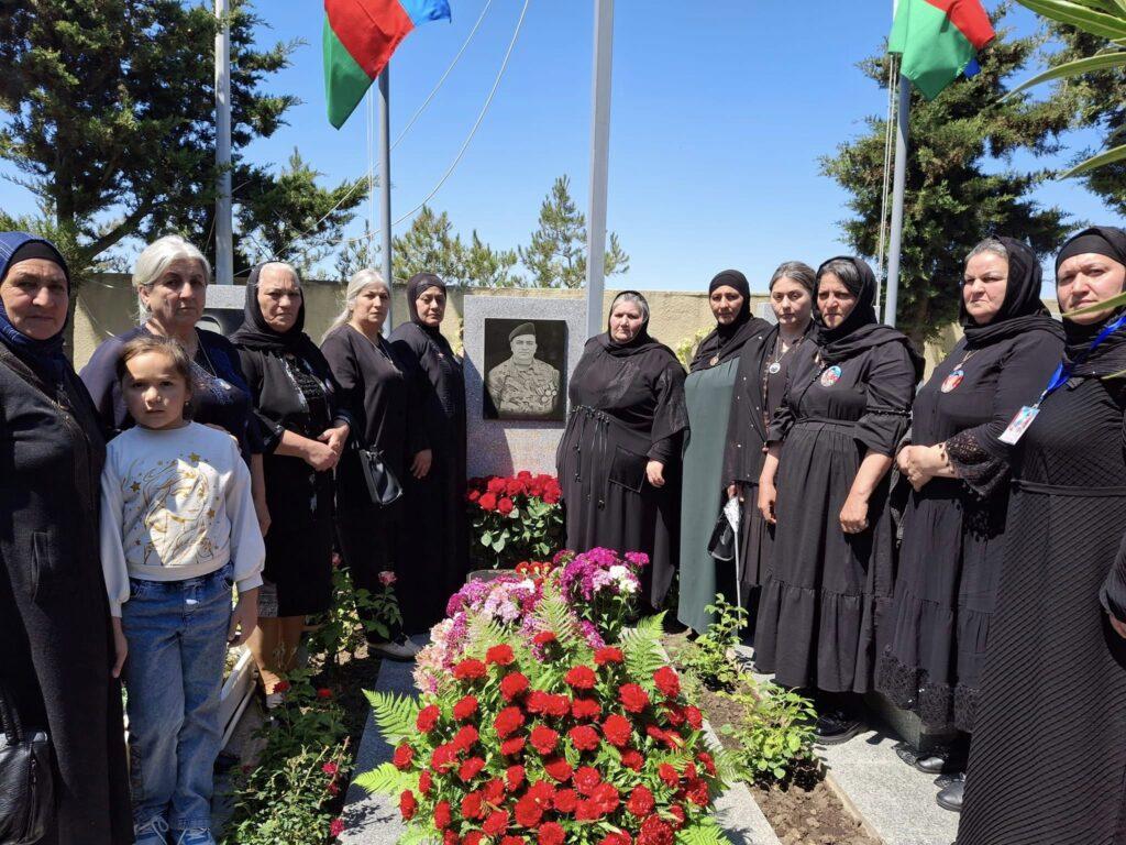 Məzarı üzərinə əklil qoyulub, gül dəstələri düzülüb, “Quran” oxunub.