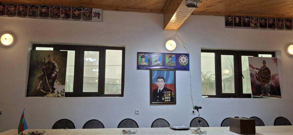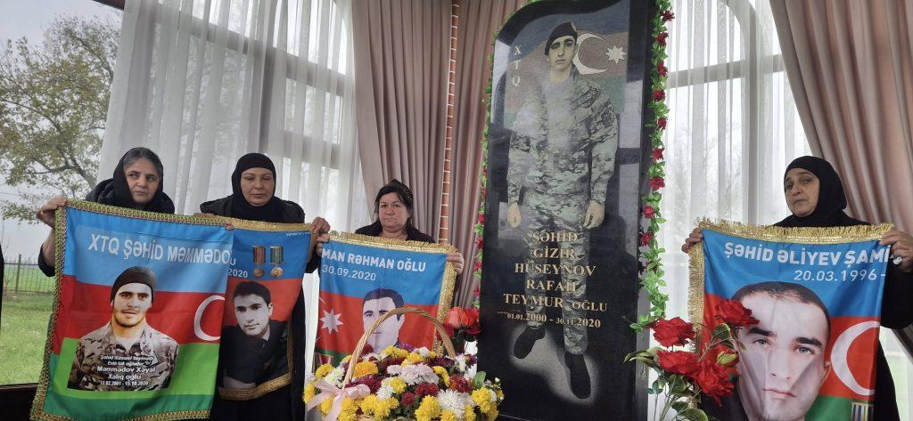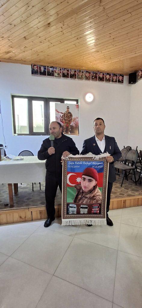 Qısa çıxışlar edilib, Şəhidin ailəsinə üzərində Rafail Hüseynovun şəkli olan xalça hədiyyə olunub.