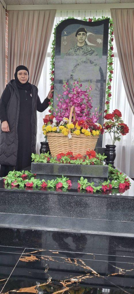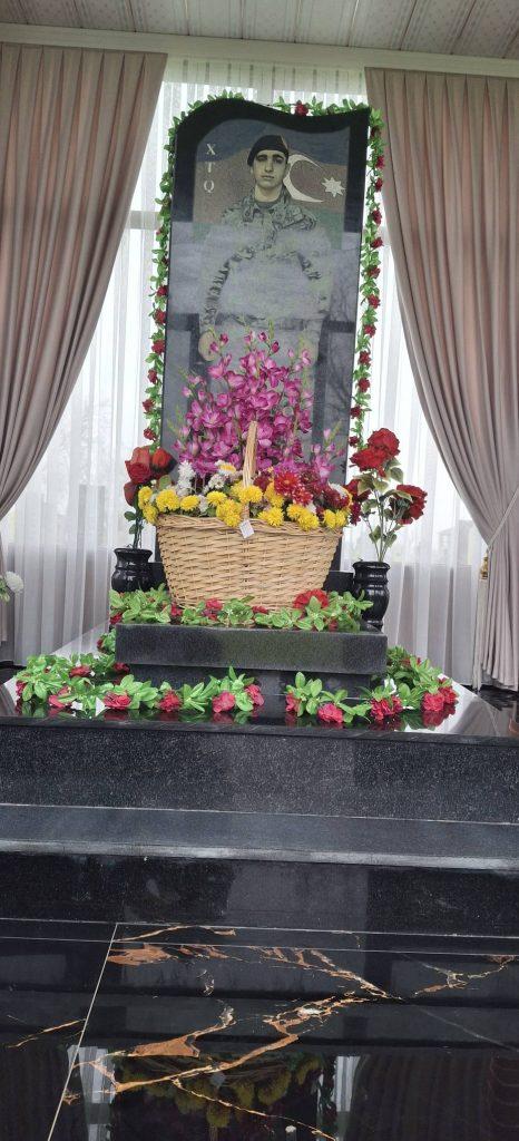 Məzarı üzərinə gül dəstələri düzülüb.
