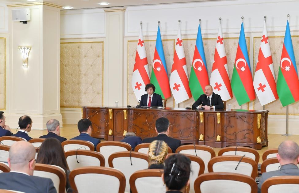 Azərbaycan Respublikasının Prezidenti İlham Əliyev və Gürcüstanın Baş naziri İrakli Kobaxidze martın 16-da mətbuata bəyanatlarla çıxış ediblər.