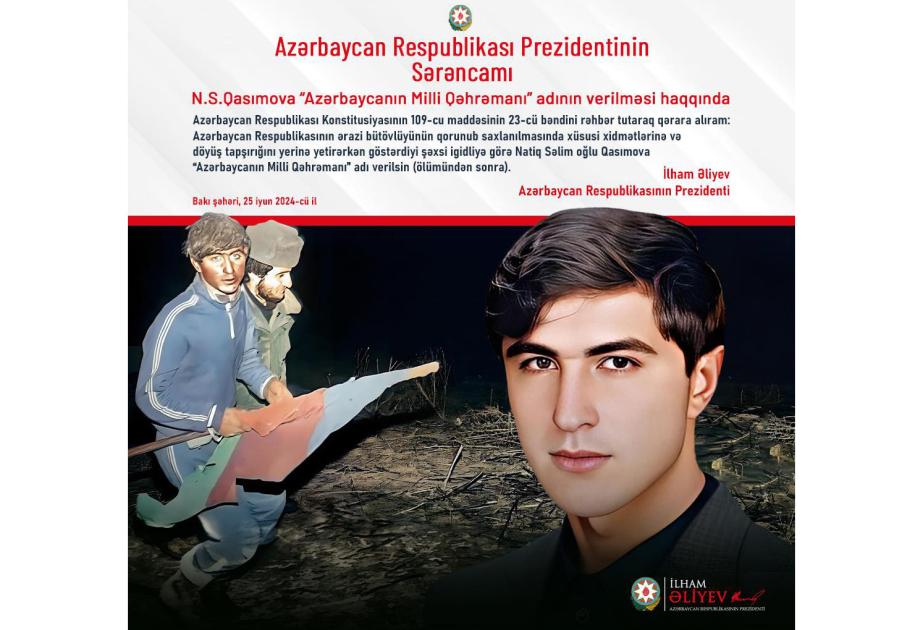 Azərbaycan Respublikasının Prezidenti İlham Əliyev sosial media hesablarında Milli Qəhrəman Natiq Qasımovla bağlı paylaşım edib.