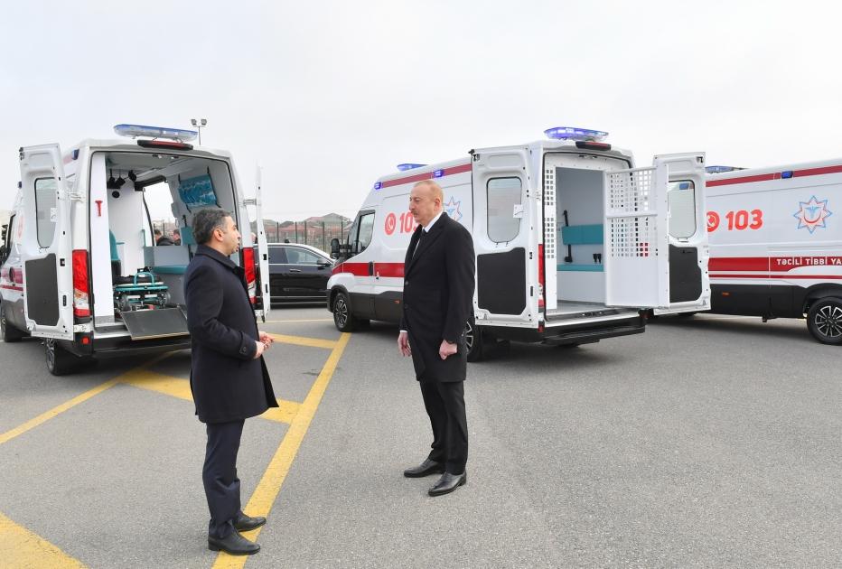 Martın 16-da Azərbaycan Respublikasının Prezidenti İlham Əliyev İcbari Tibbi Sığorta üzrə Dövlət Agentliyi tərəfindən alınmış müasir təcili tibbi yardım avtomobilləri ilə tanış olub.